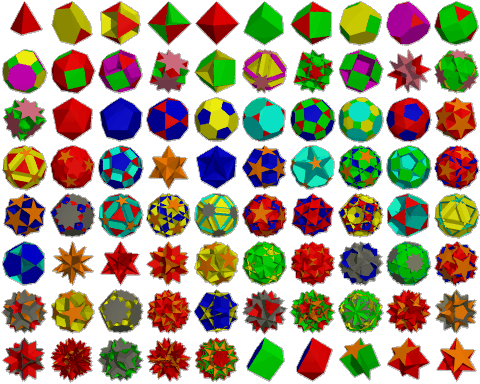 Click on the image (dodécaèdre bleu) to obtain a high-resolution image and some geometrical information on the chosen polyhedron.