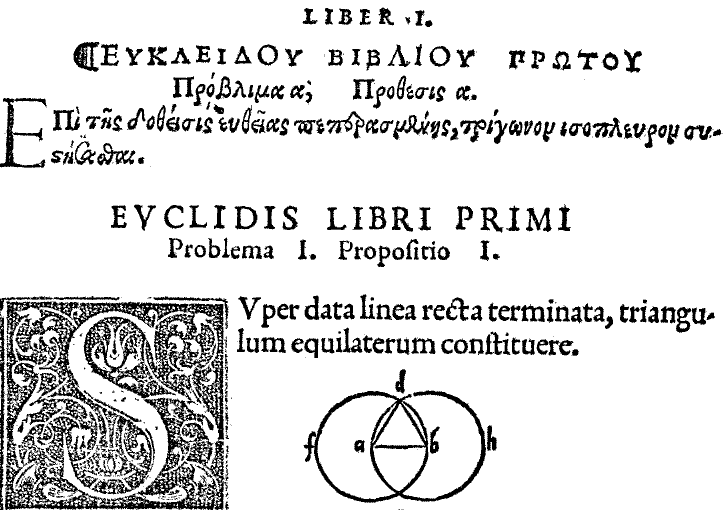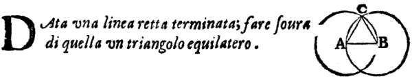 Proposizione I. Sopra una data retta linea terminata coftituire il triangolo equilatero