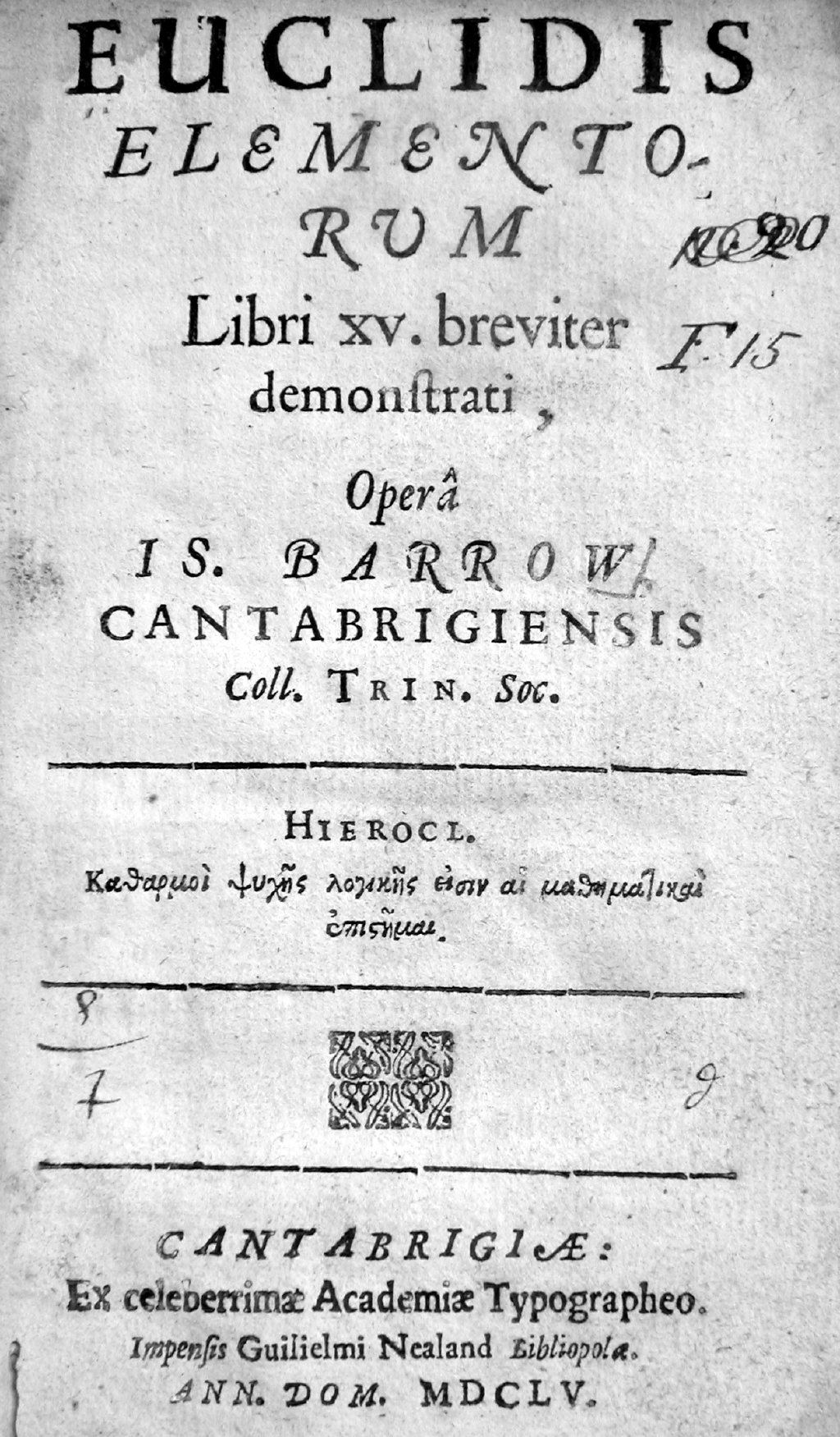 Euclidis Elementorum Libri XV breviter demonstrati. Isaac Barrow Cantabrigiensis