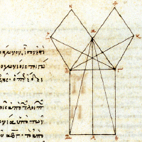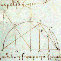 Vaticanus graecus 199. (olim 695) Saec XIV, chart., mm 299x220 f. 168-198: Euclidis Elementorum lib. I-III.20 (Heiberg). |