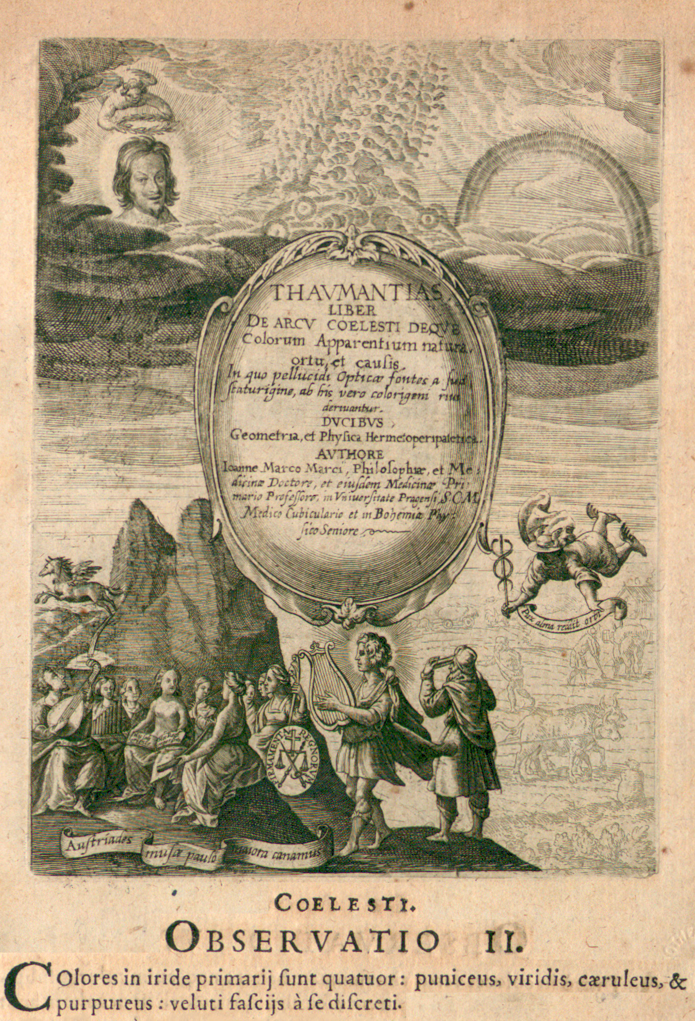 Thaumantias liber de arcu coelesti deque colorum apparentium natura, ortu, et causis, authore Johann Marcus Marci von Kronland, Pragae, Typis Academicis, 1648
