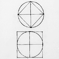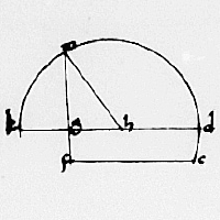 folio 31. Figure III.1 comme dans Bonn, Universitätsbibliothek S 73 & la version d'Albertus : Le centre du cercle (qu'il faut trouver), est matérialisé par une ligne supplémentaire formant un triangle de même base que dans la figure conforme, & dont le sommet est le centre du cercle. |