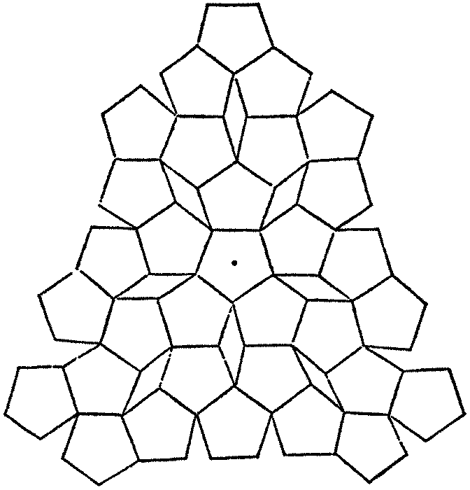 Une suite de travaux sur différents supports, avec comme règle du jeu : Le pavage pentagonal commence régulièrement, puis le désordre s'installe, sans que toutefois l'expansion du pavage ne s'interrompe. La recherche continue : Du Jeu aux Quasi-cristaux Dans les années 70, le mathématicien britannique Roger Penrose. « découvre » des pavages non périodiques. Ce sont ceux esquissés par Kepler. Plus tard on découvrira les quasi-cristaux, matériaux présentant une structure fortement ordonnée comme celle des cristaux mais non périodique. Ainsi une forme imaginée dans un contexte d'Harmonie platonicienne devient quelques siècles plus tard un jeu mathématique puis trouve son application dans la physique la plus contemporaine. Je n’avais pas, jusqu’à présent, travaillé avec la Surface du pavage, En travaillant cette Surface, je me suis rendu compte que c’était l’idée de matière, de support, que je travaillais. Plusieurs supports possibles et pour chaque support, une matière, une technique, un artisanat, une gamme et un nombre de couleurs déterminés. Kepler, l'Harmonie du Monde. II.29. Il y a Douze figures congrues dans l'univers Pavages sur www Pentagonal coffee table Étoile pentagonale, Avatars Étoile pentagonale, Figure IV.11 des Éléments d'Euclide Étoile pentagonale par spirographe Coupoles d'or Travaux antérieurs sur le pentagone, son étoile, et son pavage. α ? © |
