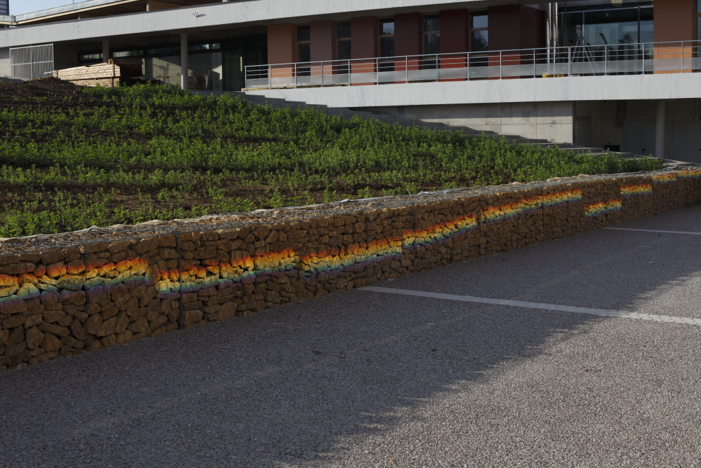 Lycée Agricole Régional Mathieu de Dombasle à Malzéville. Miroir biseauté, une ligne horizontale de 64 mètres.