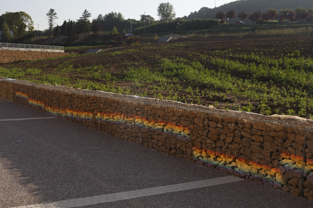 Lycée Agricole Régional Mathieu de Dombasle à Malzéville. Miroir biseauté, une ligne horizontale de 64 mètres.
