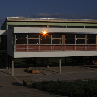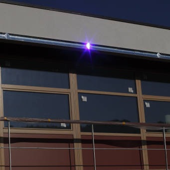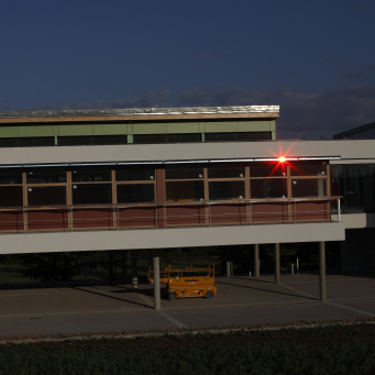 Lycée Agricole Régional Mathieu de Dombasle à Malzéville. Miroir biseauté, une ligne horizontale de 64 mètres.