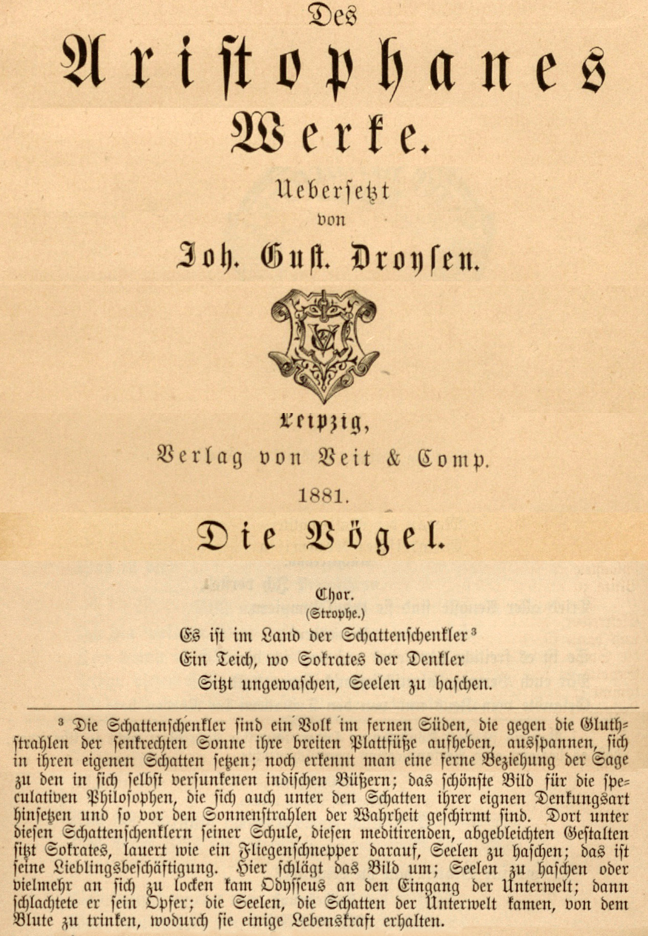 Des Aristophanes Werke, uebersetzt von Joh. Gust. Droysen.