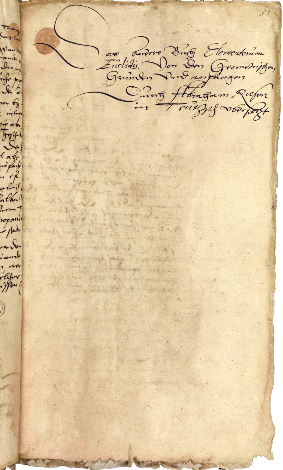 Das andere Buch Elementorum Euclidis. Von den Geometrischen Gründen und anfängen Durch Abraham Riesen in Teutzsch ubersetzt