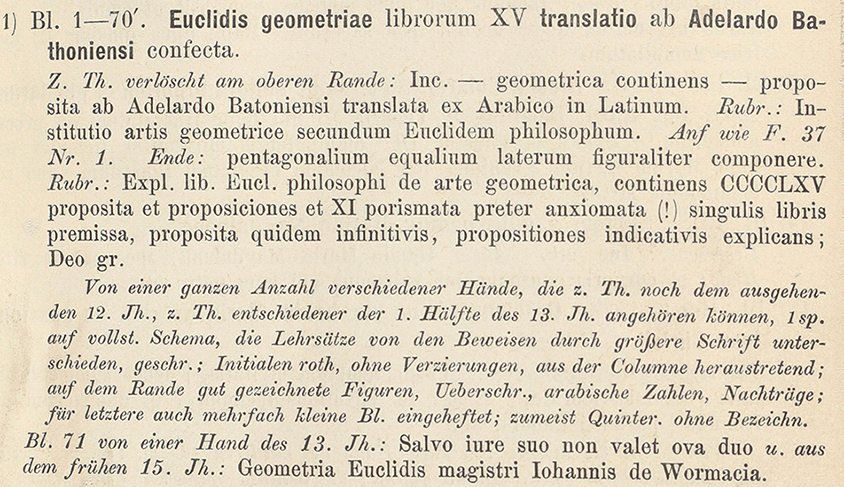 CA 4° 23, Euclidis geometriae librorum XV translatio ab Adelardo Bathoniensi confecta.