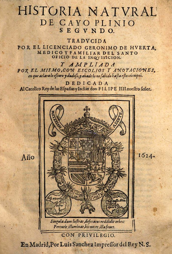 Historia Natvral de De Cayo Plinio Segundotradvcida por el licenciado Geronimo Hverta
