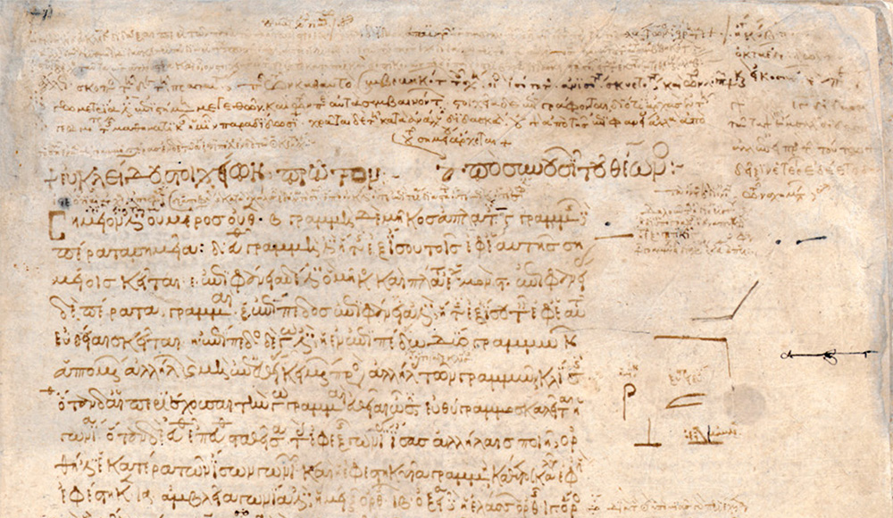 | folio 74 verso. deux figures VI.28 partagent le même triangle ![]() |